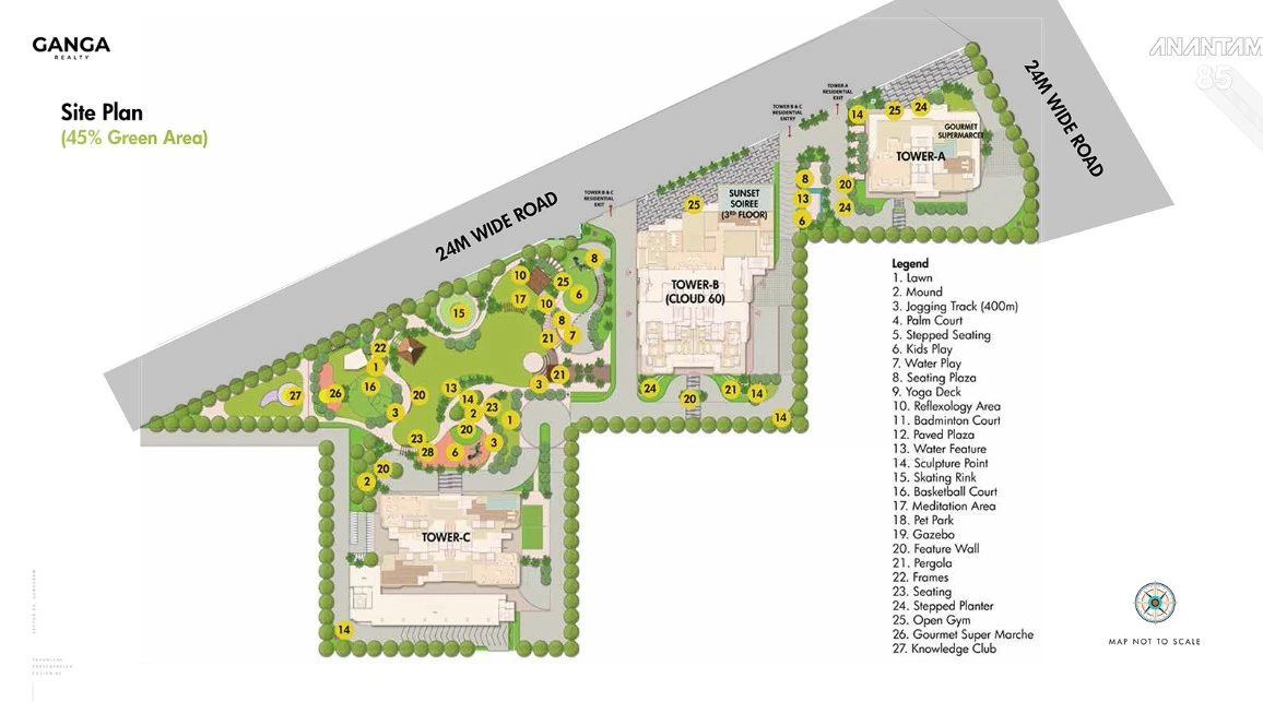 Welcome to Ganga Anantam, a new destination for luxury lifestyles, resort-style living, and AI-enabled amenities. This residental Project will be one of the most luxurious residences ever in Gurgaon, with a well-developed location and world-class specifications.